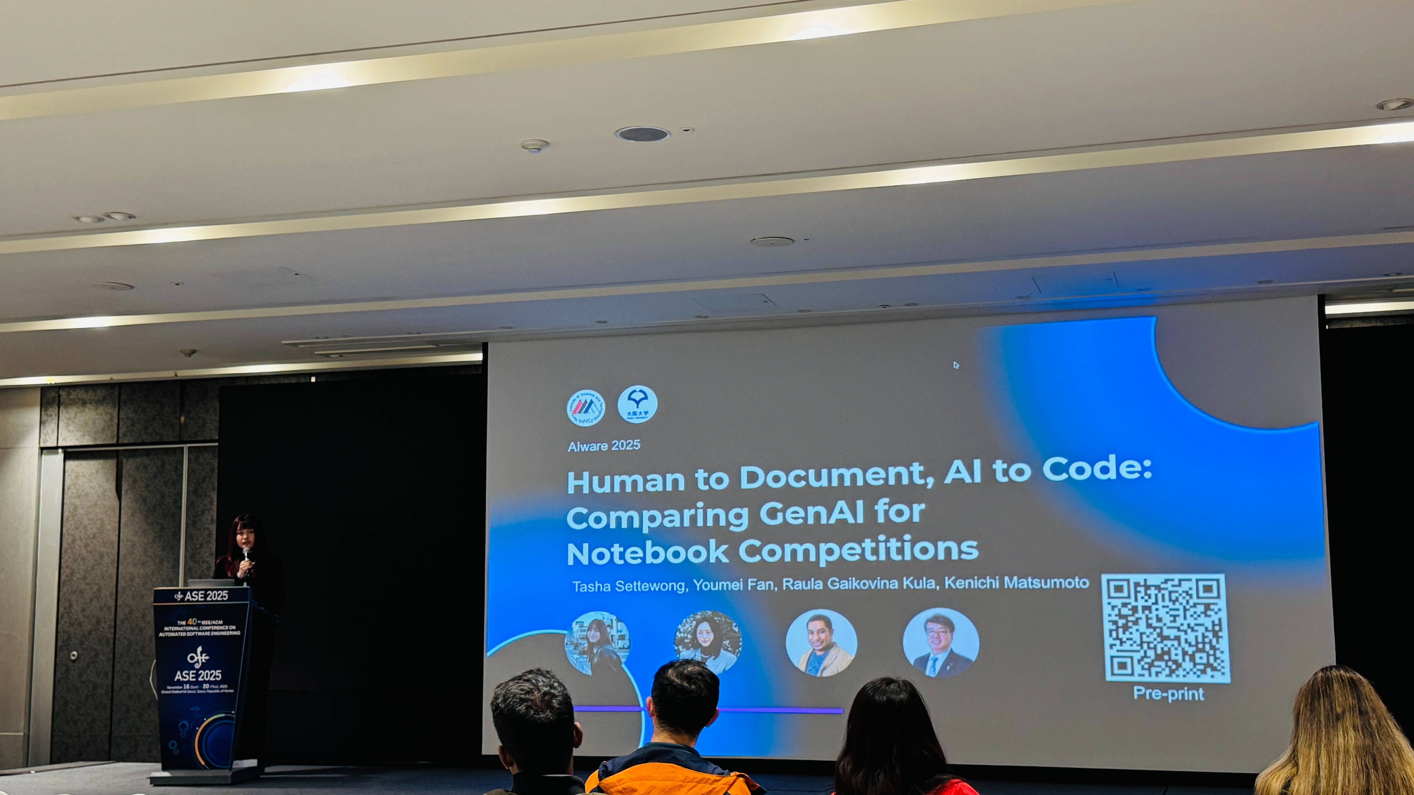 Hidetake Tanaka (D1) and Tasha Settewong (M2) presented at the 2nd ACM/IEEE International Conference on AI-powered Software (AIware).